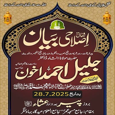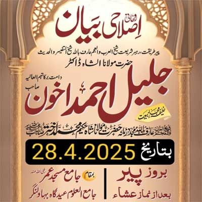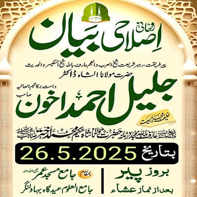 Monday Bayan Harmain Sharefain Kay Safar Kay Samraat at Jamia Masjid Umar Eidgah BN 28.04.202519 views • Arif Billah Molana Shah Jaleel Ahmad Akhon DB • BAYANAT