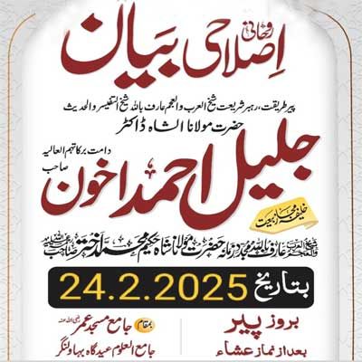 Bayan Qainaat ke Baqa 2 Chezoon Elam e Deen aur Adal o Insaaf near Fort Naher BN 08.02.202511 views • Arif Billah Molana Shah Jaleel Ahmad Akhon DB • BAYANAT