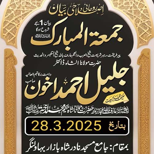 Bayan Jumah Insaan main Elam o Adal Kay Oasaaf at Jamia Masjid Nadar Shah Bazar 10.01.202513 views • Arif Billah Molana Shah Jaleel Ahmad Akhon DB • BAYANAT