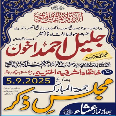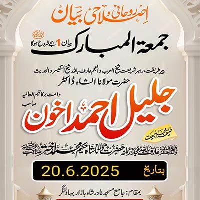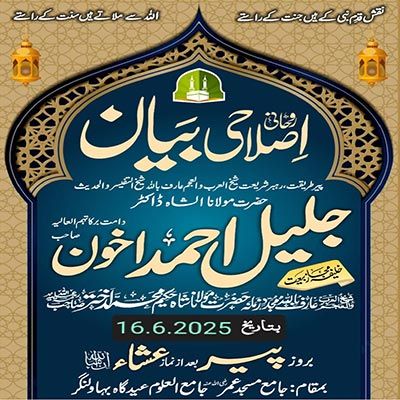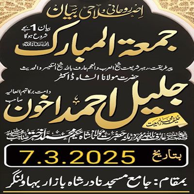 Bayan Taqreeb e Nikah Dature of Hazrat Mufti Khaliq Ahmad Akhoon DB at Faisal Palace BN 05.04.20252 views • Arif Billah Molana Shah Jaleel Ahmad Akhon DB • BAYANAT