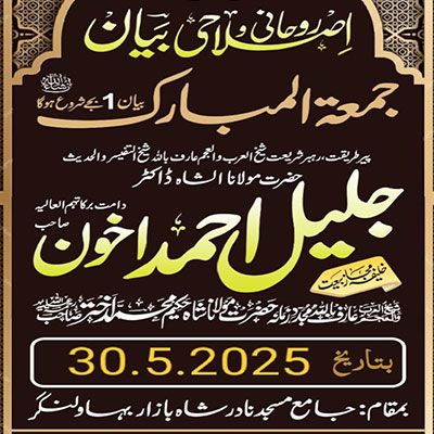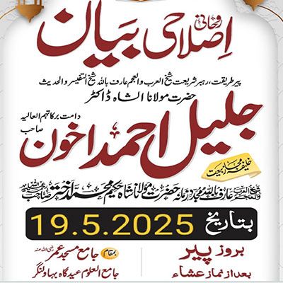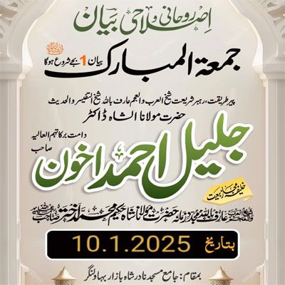 Monday Bayan Dill aur Roh Ke Tanveer Ka Tareqah at Jamia Masjid Umar Eidgah BN 05.05.202519 views • Arif Billah Molana Shah Jaleel Ahmad Akhon DB • BAYANAT