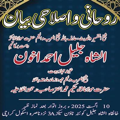 Bayan Zikr o Anabat ka Inaam at Khanqah Akhtaria Jaleelia Nazim Abad Karachi 22.08.20252 views • Arif Billah Molana Shah Jaleel Ahmad Akhon DB • BAYANAT