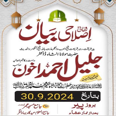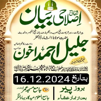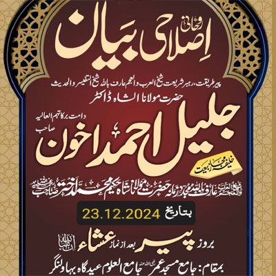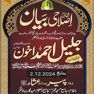 Bayan Monday Roh Ko Sheranah Bananay Ka Tareqah at Jamia Masjid Umar Eidgah 23.12.202417 views • Arif Billah Molana Shah Jaleel Ahmad Akhon DB • BAYANAT