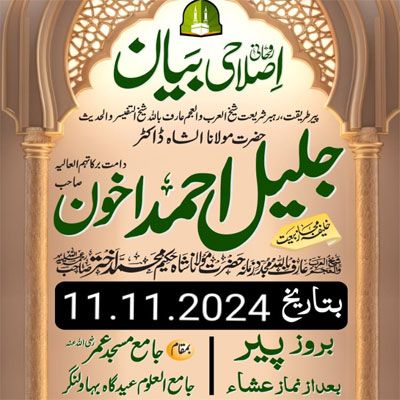 Bayan Monday Asal Insaan aur Allah Tala Ke Dosti at Jamia Masjid Umar Eidgah 11.11.202416 views • Arif Billah Molana Shah Jaleel Ahmad Akhon DB • BAYANAT