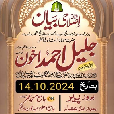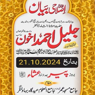 Bayan Monday Nafse Ammarah se Mutmaennah tak at Jamia Masjid Umar Eidgah BN 14.10.20249 views • Arif Billah Molana Shah Jaleel Ahmad Akhon DB • BAYANAT